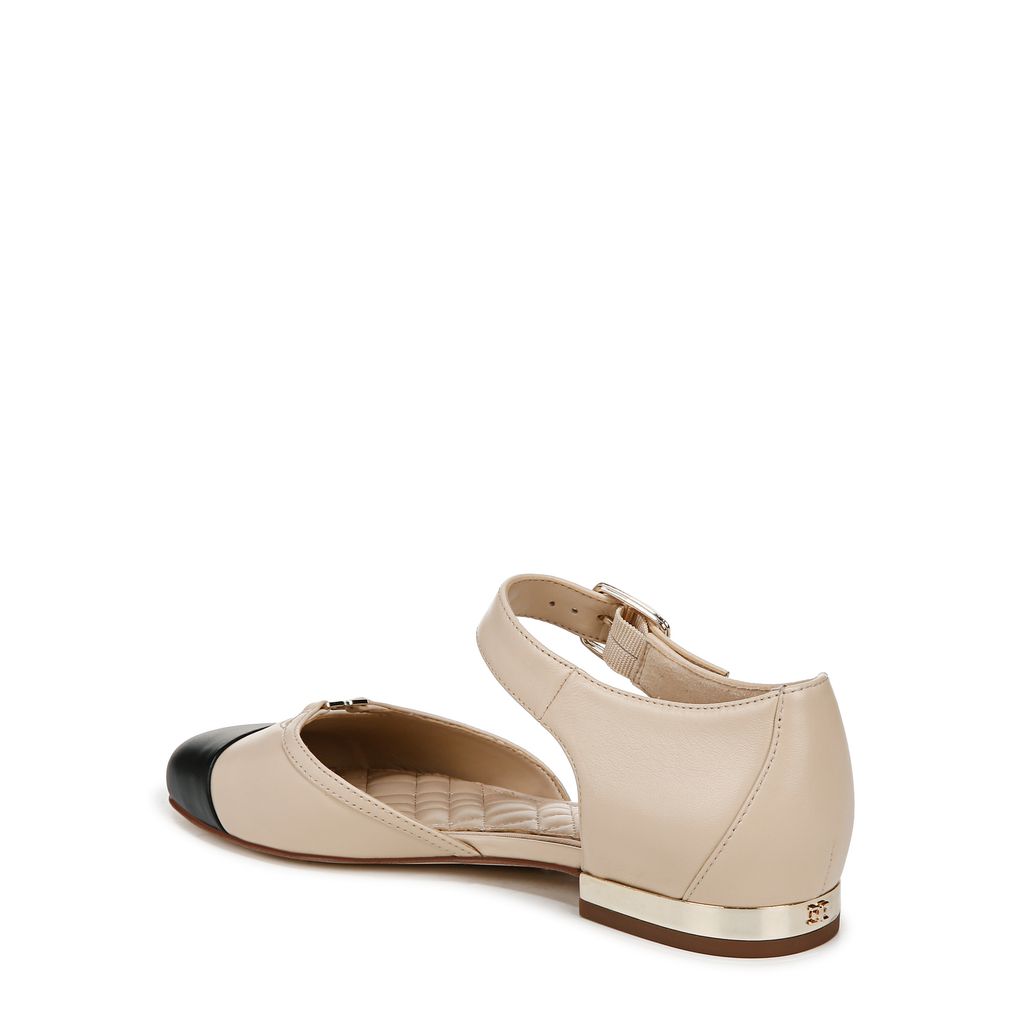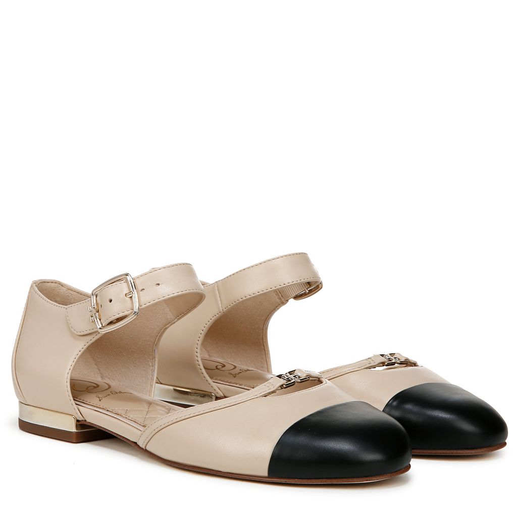 نقدم لكم حذاء رايلي المسطح ذو الأشرطة ومقدمة مفتوحة. يتميز هذا الحذاء المسطح الفريد بكعب متباين وحافة حزام مزينة بالشعار. يبدو حذاء رايلي بسيطًا، ولكنه أنيق للغاية وجاهز لأي موسم.