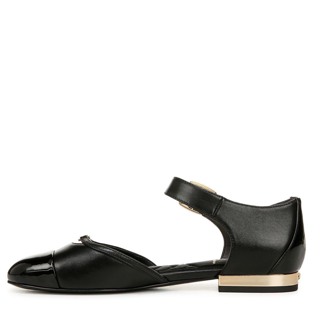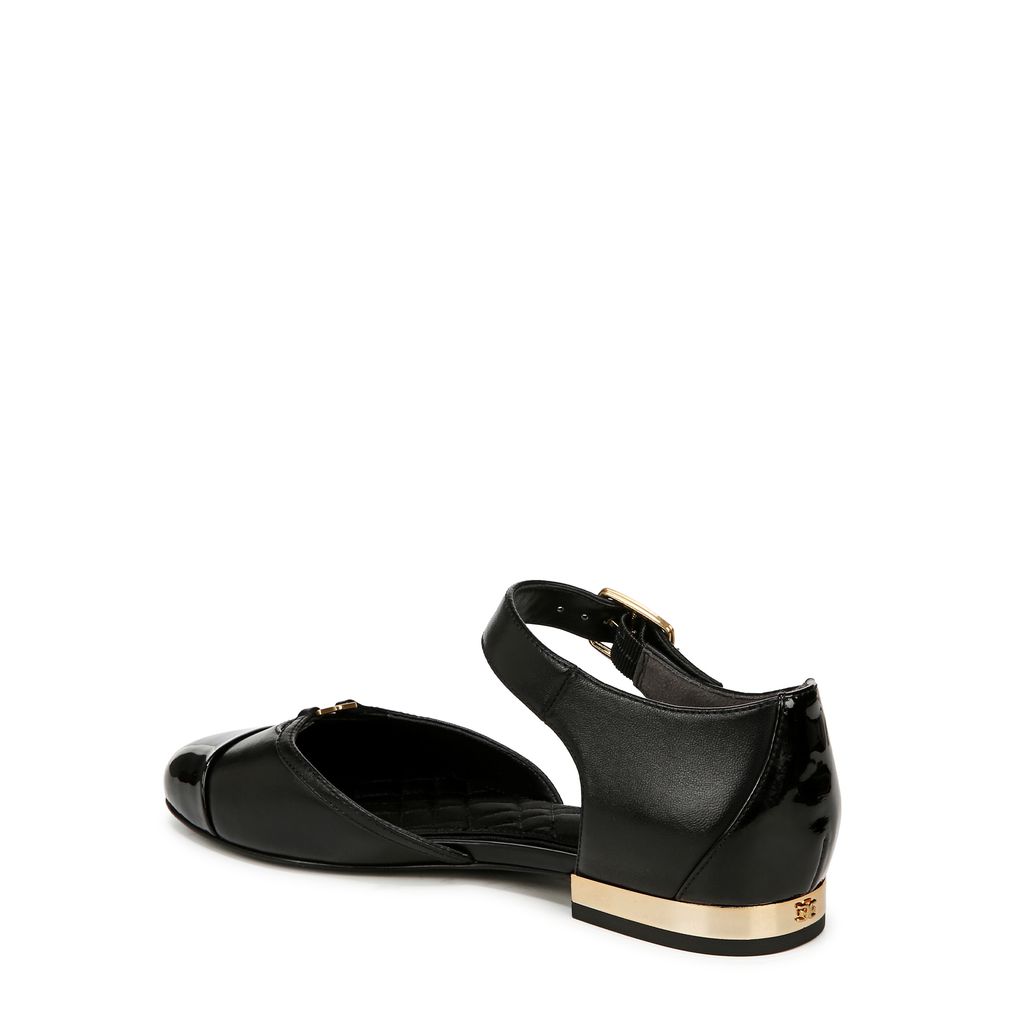 نقدم لكم حذاء رايلي المسطح ذو الأشرطة ومقدمة مفتوحة. يتميز هذا الحذاء المسطح الفريد بكعب متباين وحافة حزام مزينة بالشعار. يبدو حذاء رايلي بسيطًا، ولكنه أنيق للغاية وجاهز لأي موسم.